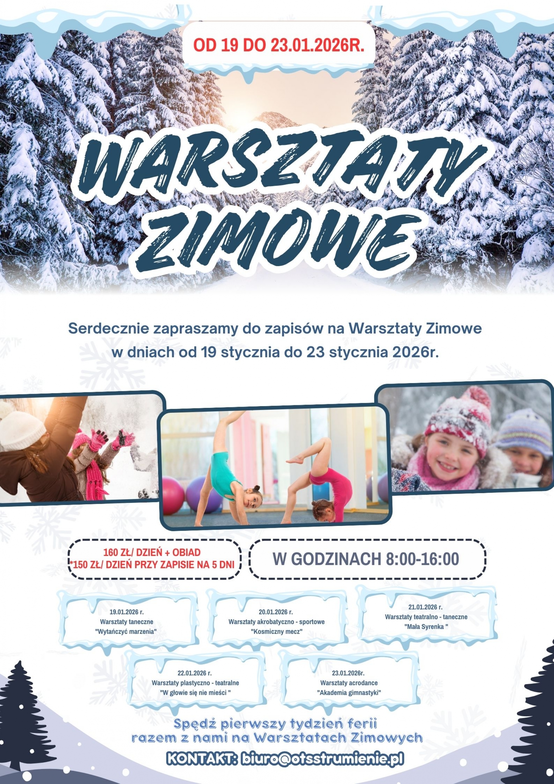 WARSZTATY ZIMOWE 2026 OD 19 STYCZNIA DO 23 STYCZNIA 2026R.